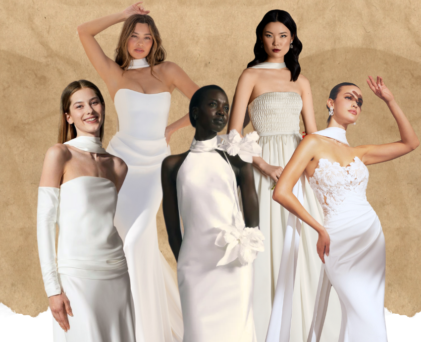 There’s a reason why the bridal neck scarf is having its moment. A blend of vintage charm and contemporary coolness, this versatile accessory is quickly becoming a must-have for the modern bride. Neck scarves have long held a place in fashion history (think silk cravats in Old Hollywood, or vintage headscarves of the 1950’s), but today, designers are reimagining the scarf for the aisle.