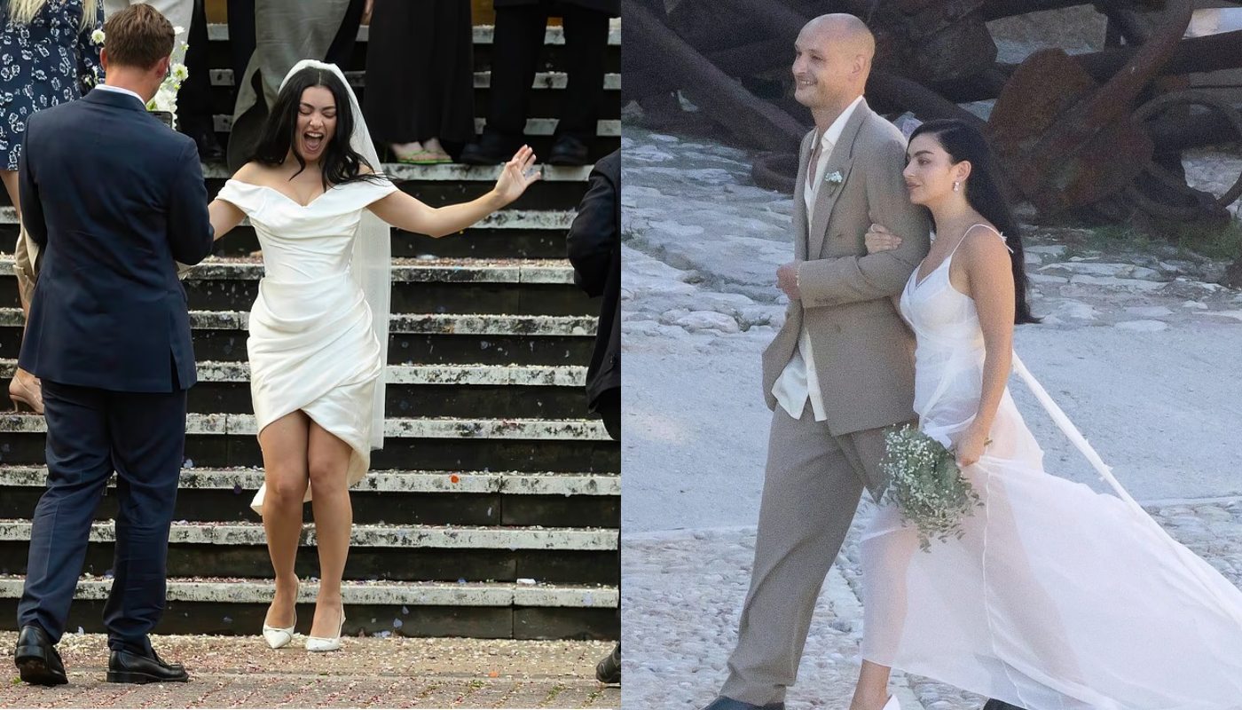 Charli XCX’s dual-moment nuptials with The 1975 drummer, George Daniel, certainly made a statement. The couple first said ‘I do’ in Hackney’s Town Hall in London, where the singer opted for a classic white Vivienne Westwood mini wedding dress, over her signature brat-black aesthetic. The off-the-shoulder mini bridal dress featured a structured corset bodice and draped asymmetrical short skirt. Paired with a simple tulle veil, white slingback Jimmy Choo heels and her iconic oversized black sunglasses, the look struck a balance between bridal fashion and personal style, that felt incredibly brat-chic.