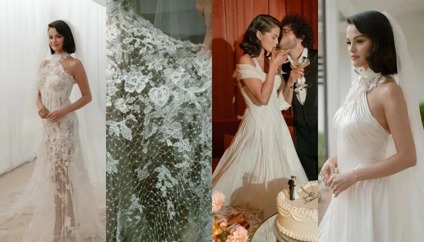 However, Gomez didn’t stop there. Over the course of the celebration, she changed into additional custom Ralph Lauren pieces, each as special as the last. Gomez wore a double-faced silk satin gown for the reception, featuring a halter neckline with a delicate macramé collar, exposing her shoulders. The silhouette flowed into a wide skirt with a rounded train, perfect for photos with her husband. The singer then opted for a more relaxed, tea length halterneck dress for the evening’s joyful moments, featuring a vintage inspired fit-and-flare skirt, perfect for dancing. Gomez’s bridal looks told a story of timeless elegance and rich personal meaning and with her quiet influence, we are sure that this triple-look moment is set to inspire bridal trends for the year ahead.
