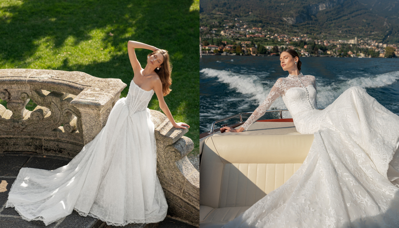 Ricca Sposa has turned its gaze to the ’poetic beauty’ of Lake Como for its latest collection, Breathtaking Infinity. With its endless horizon, soft light and sense of calm elegance, the luxury bridal brand has translated the serenity of one of Italy’s most romantic destinations into a feeling: ’the emotion of standing at the edge of something infinite’. Amongst the standout pieces is a romantic princess gown that ’perfectly embodies the spirit of Breathtaking Infinity - romantic, refined and effortlessly transformative’, says Anna Tymoshenko, a spokesperson for the brand. Crafted from delicate Chantilly lace, the gown featured a refined basque waist and a graceful row of covered buttons running down the centre front, indicating a subtle nod to timeless bridal tradition. The look is further elevated with a removable bolero with a high neckline and long sleeves, adding sophistication and versatility.